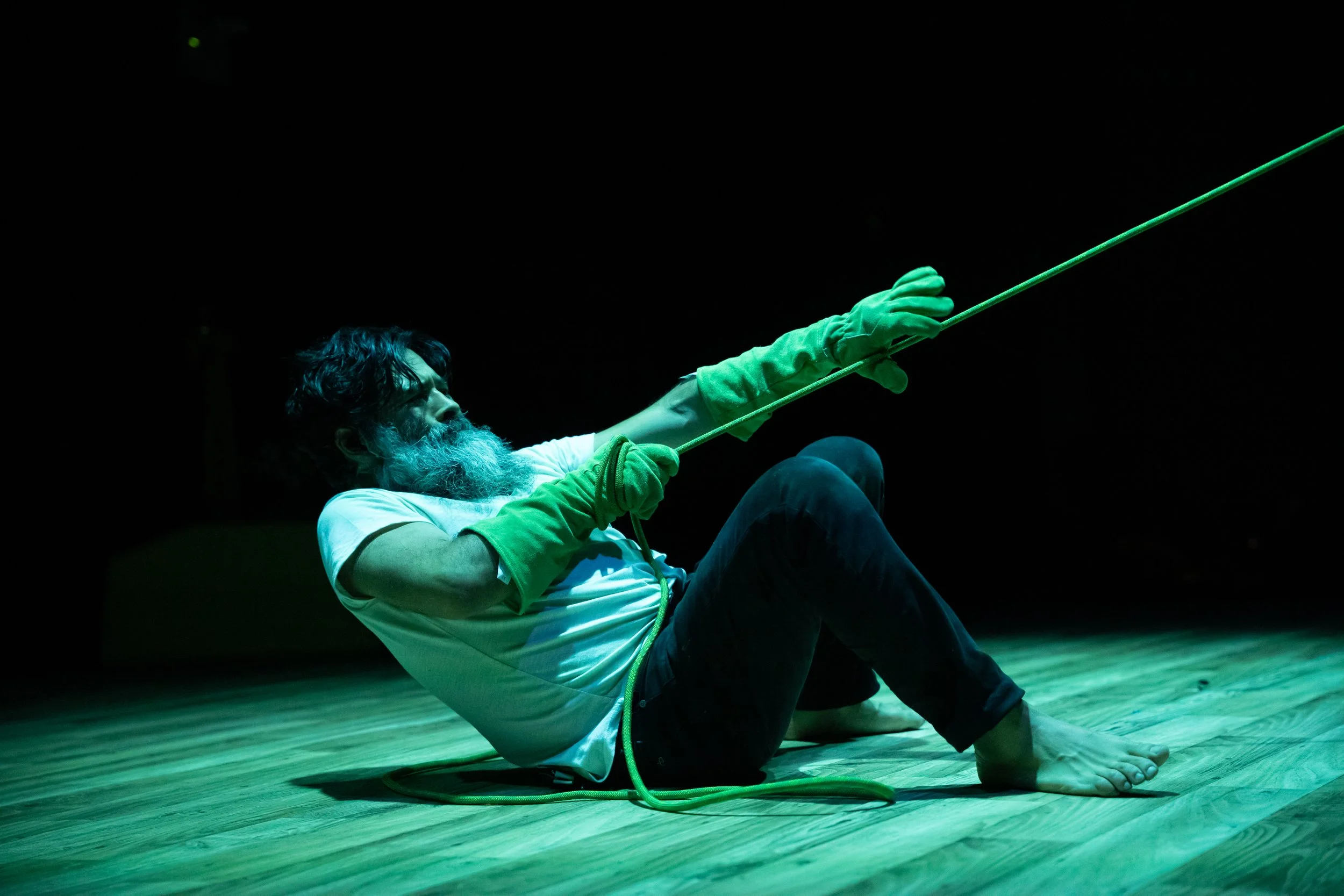 Placing your work within a musical history, I think ties into a theme of Mano a Mano. Maybe not the generative theme, as you talk about your obsession with your body and things like that, but the construction of stories and the construction, or falling apart of narrative, and how, musically, it fits into a narrative that's maybe fallen apart. I think about especially in the 20th century, you had so much seeming development and progression which then ostensibly comes to a crashing halt sometime in the late 1980s or early 1990s. Now, I don't necessarily believe that's true, but that's a narrative that's been foisted on our generation for the last 20 or 30 years. That history ended and art stopped developing. There are no more heroes. And I think: great that there are no more heroes. They were boring to begin with. But somehow the narrative of experimental culture, for lack of a better term, is not progressing. And I'm curious about that. And the storytelling of art makers, in addition to the storytellers of Beowulf and Gawain as they start hoovering up everything that's around them and spitting out something not unlike your piece. There's not really a question in there, I suppose.